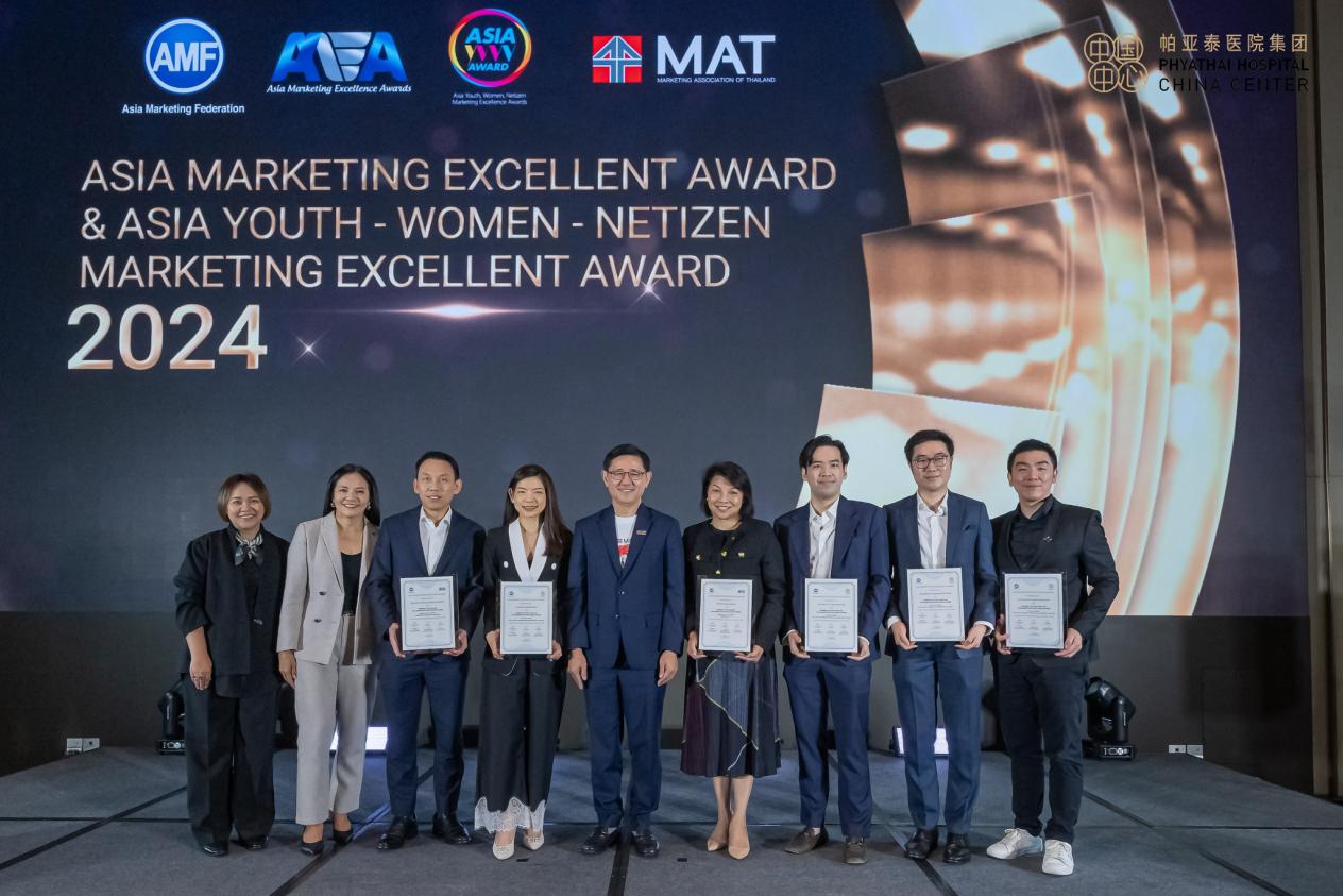 由帕亚泰-保罗医院集团市场总监市场总监 Supakorn Pawanna 先生、市场与企业传播总监 Vanida Sethasawet 女士,以及市场竞争力经理 Supaporn Ngendee 女士带领,接受了该奖项。此颁奖仪式由泰国市场营销协会(MAT)在泰国提前举行,正式颁奖仪式将于 2024 年 10 月在菲律宾举行。