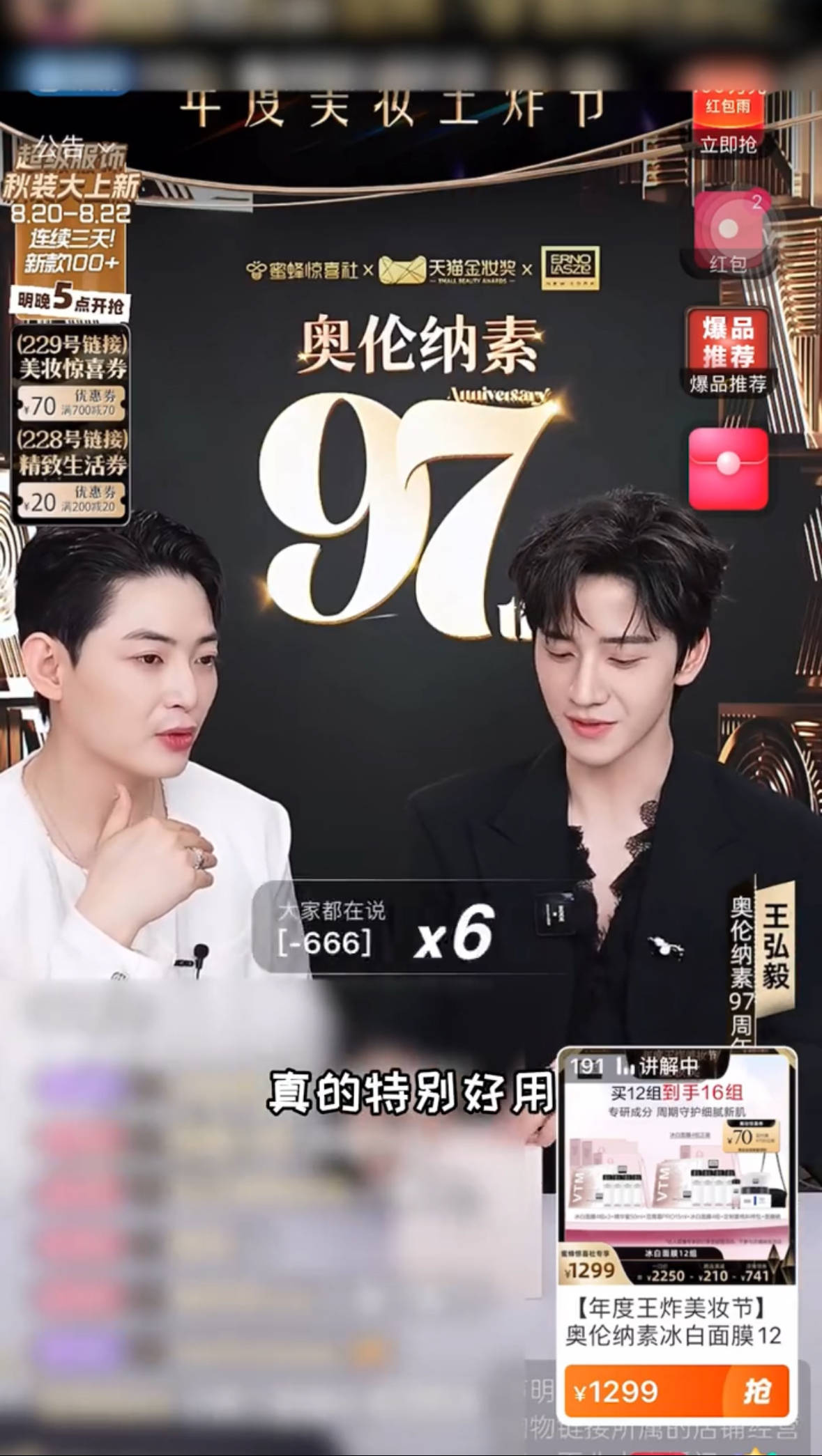 Erno Laszlo奥伦纳素还携手蜜蜂惊喜社,与97周年品牌专研官发财一同打造Erno Laszlo奥伦纳素97周年庆专场,于线上与大家一起共度生日狂欢时刻。97周年护肤挚友「面霜类」王弘毅也惊喜空降直播间,为粉丝带来了心动周边和福利。
