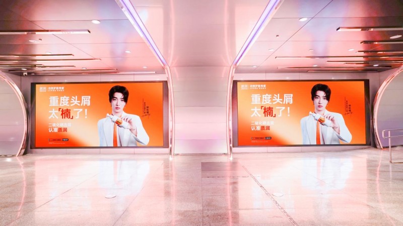 一是品牌代言广告选择了落地杭州湖滨银泰in77光影艺术长廊——这里作为全国核心商圈,不仅是年轻消费群体的聚集地,更是品牌实力的“展示窗口”,强化了品牌影响力;二是大屏以“1%二硫化硒去屑洗发水全国销量第一”为核心信息,并搭配林秋楠的专业形象,完成了“核心场景曝光 + 权威认知传递 + 用户信任建立”的三重营销目标。