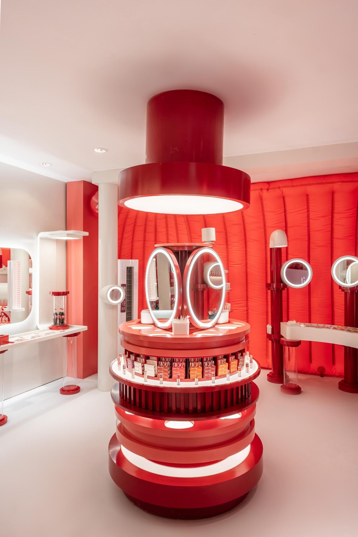 以“快乐冒泡”为设计主题,INTO YOU在上海市黄浦区TX淮海打造了为期一周的INTO YOU x可口可乐联名主题快闪店,快闪店整体空间共分为灵感气泡、色彩工厂、梦想之地三个区域。消费者不仅可以体验联名产品的妆感与色彩,还可以和朋友在自拍区进行自拍,记录下友情的快乐瞬间。