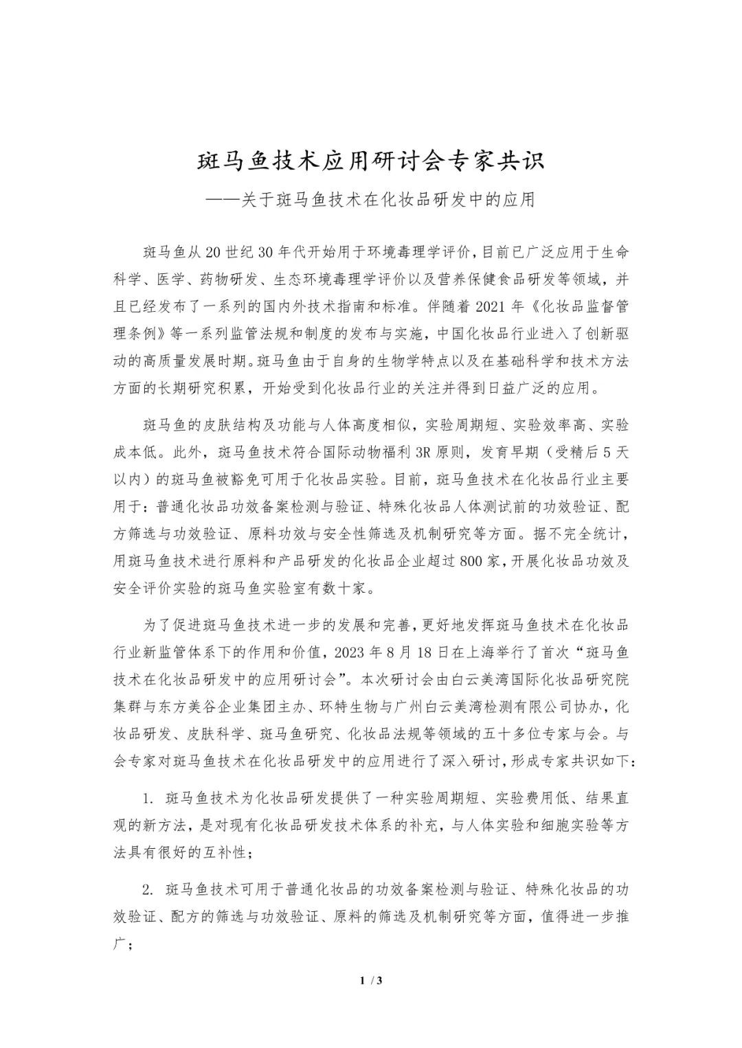 《斑马鱼技术在化妆品研发中的应用研讨会专家共识》重磅发布