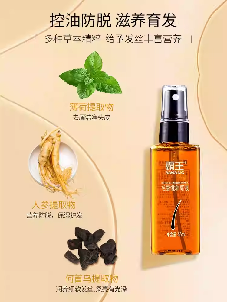 核心优势:这款产品最大的亮点在于其温和的植物配方。它没有采用刺激性的化学药物,而是精选了侧柏叶、当归、何首乌等多种中草药萃取成分。侧柏叶在传统中常用于清凉去油、固发,对于改善头皮出油过多有很好的帮助。