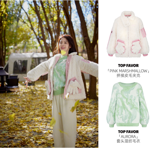 4、陈瑶同款TOP FAVOR拼接皮毛夹克+套头混纺毛衣;
