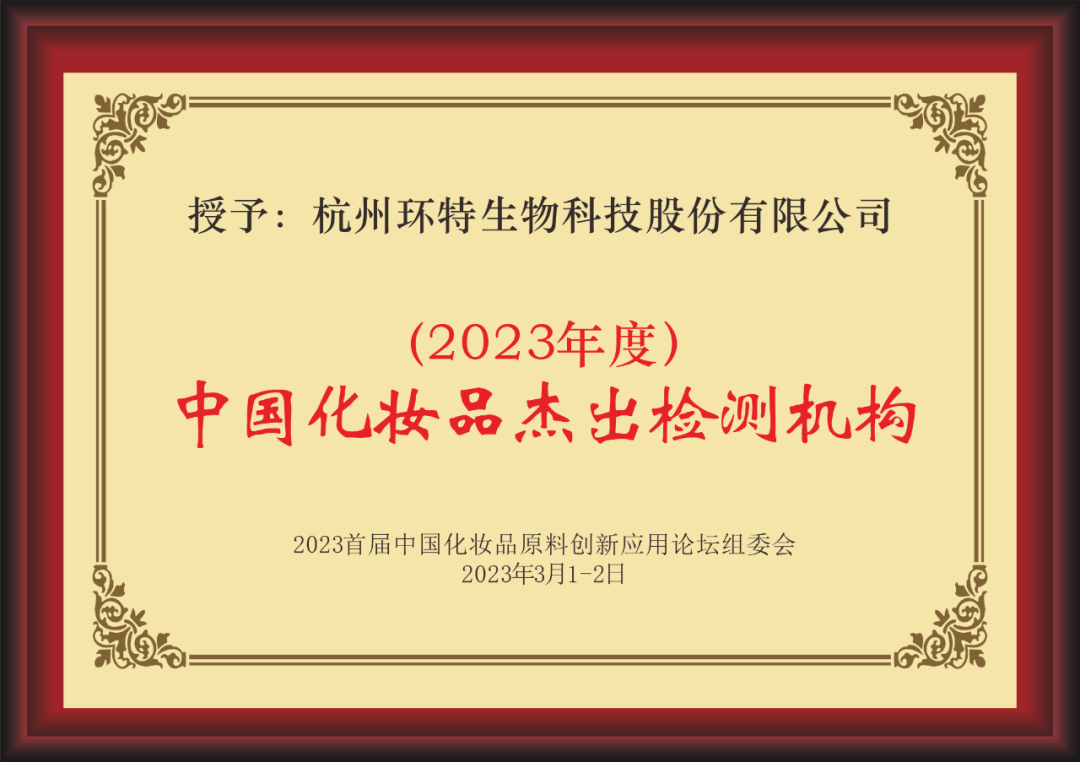 环特生物荣获“2023年度中国化妆品杰出检测机构”