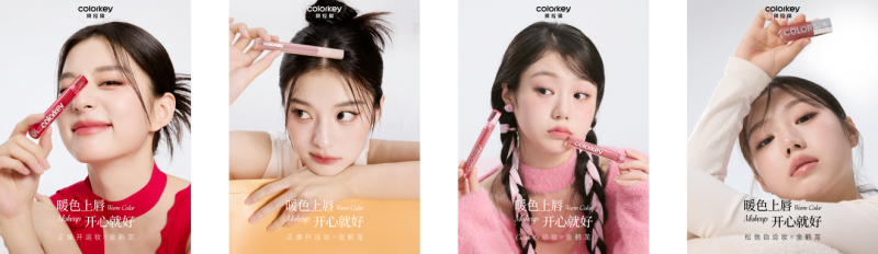 除此之外,Colorkey珂拉琪在打造秋冬妆容上融合了小红书秋冬时髦趋势发布。基于中国传统文化、结合现代色彩心理学等理念,小红书在秋冬发布了名为“东方三缘色”的三种关键色彩趋势——“绝缘色”墨黑、“正缘色”品红,以及“随缘色”檀绿。Colorkey珂拉琪此次以四大秋冬暖色调为灵感,联动小红书的“正缘色”品红,携手知名的明星化妆师金鹤龙,共创四大开运妆容:正缘开运妆、暴富千金妆、Crush心动妆和松弛自洽妆,在秋冬为珂拉琪女孩们带来温柔暖意,提供积极的情绪价值,助力她们“好运满满,开心就好”。