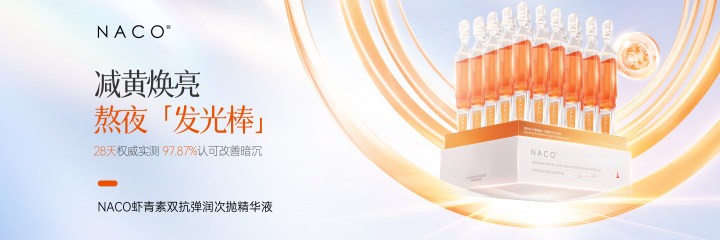 作为护肤金字塔中非常重要的一环,很多人对于焕亮的理解都只局限在“熬夜党”人群,但事实上,肌肤焕亮已经逐渐成为消费者广泛存在的需求。洞察到这一消费者需求,NACO虾青素将焕亮的定义进行延展和扩充,从抗氧、抗氧、祛黄提亮三个维度出发,实现一支精华不同肤质精细焕亮。熬夜加速肌肤氧化,奶茶加速肌肤糖化,肌肤氧化和糖化互相促进影响,据研究显示,活性氧ROS会参与肌肤糖化反应的大部分过程,加速AGEs的产生;而糖化终产物AGEs一旦生成,会诱导皮肤产生更多ROS、导致脂质过氧化,加速肌肤暗沉与老化。为了更好抵抗该过程的发生,给娇嫩肌肤温和焕亮,NACO虾青素发光精华氧糖双抗协同作用,御氧抗糖祛黄提亮,为肌肤带来更弹、更透、更亮的氧糖双抗护肤体验。