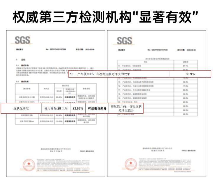 早在2018年前,NACO就专注锁定虾青素抗氧功效配方的研发,4年专研打破虾青素壁垒,通过天然抗氧化成分搭配纳米技术的,稳定NACO虾青素次抛配方体系!实现不掉色不失活(无色素添加)。超前领先的技术和海量的用户护肤数据让NACO虾青素成了新一代发光标杆。NACO虾青素联合权威第三方SGS人体功效报告,31名受试者连续使用NACO虾青素28天测试结果显示,肌肤光泽度提升+22.88%,焕亮效果显著,更有超高83.9%的受试者认同产品使用后,有改善皮肤光泽度的效果。