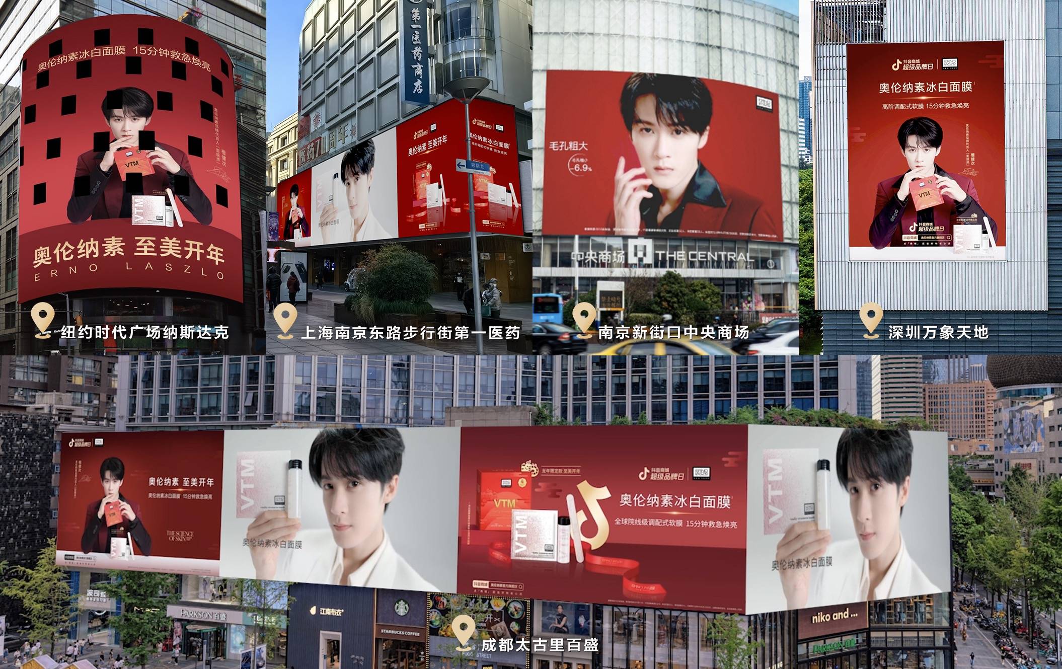超级大屏联动空降环球五城街头,深圳、成都、上海、纽约与南京同时点亮,瞩目新年闪耀地标,进一步展现全球院线级调配式软膜奥伦纳素冰白面膜带来的极致肌肤之美,无数奥粉驻足停留,在街头打卡留念,与奥伦纳素一起感受新年焕新颜炽热气氛。