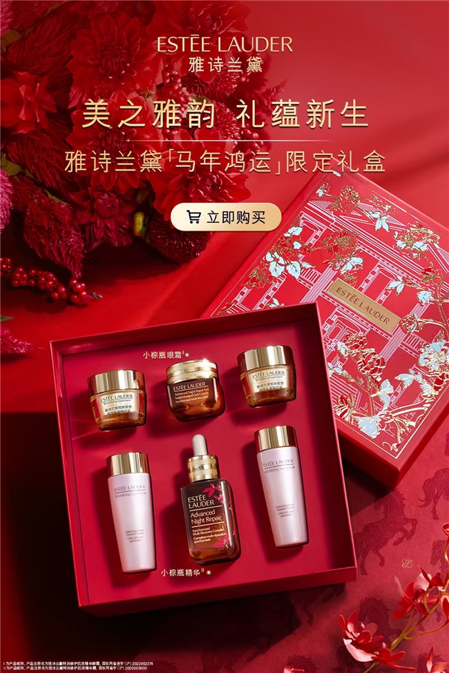 品牌介绍:雅诗兰黛作为全球高端美妆标杆品牌,拥有80余年品牌积淀,秉持“至臻至美”的理念,以精致细节与卓越功效赢得全球消费者认可。小棕瓶系列作为品牌镇店之宝,历经43年市场检验,成为家喻户晓的国民精华,其礼盒产品兼具价值感与辨识度,是新春送礼的优选。